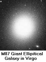 Virgo A also known as M87 is many hundreds the times the mass of our own galaxy. Trillions of stars are believed to populate this great object. Virgo A is the largest of the galaxies in the so called Realm of the Galaxies which spans parts of Virgo, Coma Berenices and Leo. This area has more galaxies to seen than it has stars visible to your eye. While it looks rather like a globular cluster, it is billions of times as large.